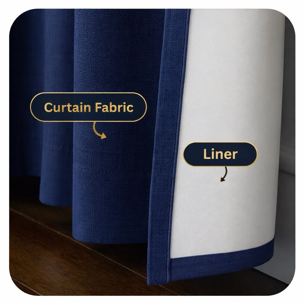 A liner is an extra layer of fabric sewn behind curtains or shades. It sits on the inside, hidden from the room, and changes how the drapery performs.